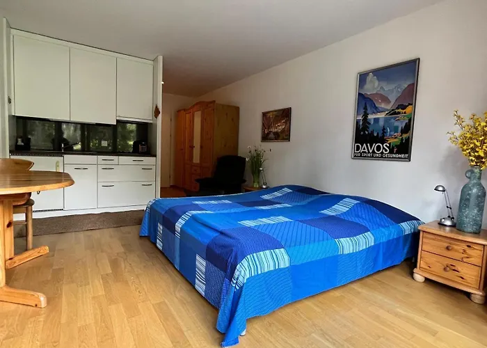 مكان الإقامة يقع على بعد حوالي 10 دقائق بالسيارة من مركز أو لا لا للصحة. يقع وسط المدينة على بعد 4 كم فقط، ويقع مطار سانت غالين على بعد 115 كم من هذه الشقة بمساحة 32 مترًا مربعًا. مكان الإقامة يقع في غضون 25 دقائق تقريبًا مشياً على الأقدام من بحيرة دافوس.
